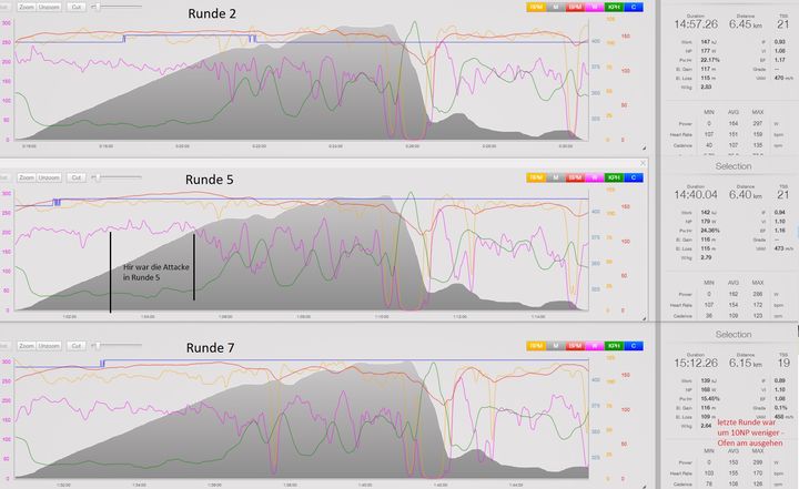 Auf dem komplett flachen Kurs war es von vorherein klar das sich niemand um die Führungsarbeit reißen wird und so war es dann auch. Teileweise waren wir ja schon im Regenerationstempo unterwegs und nur bei den Wenden wurde immer wieder attackiert.
